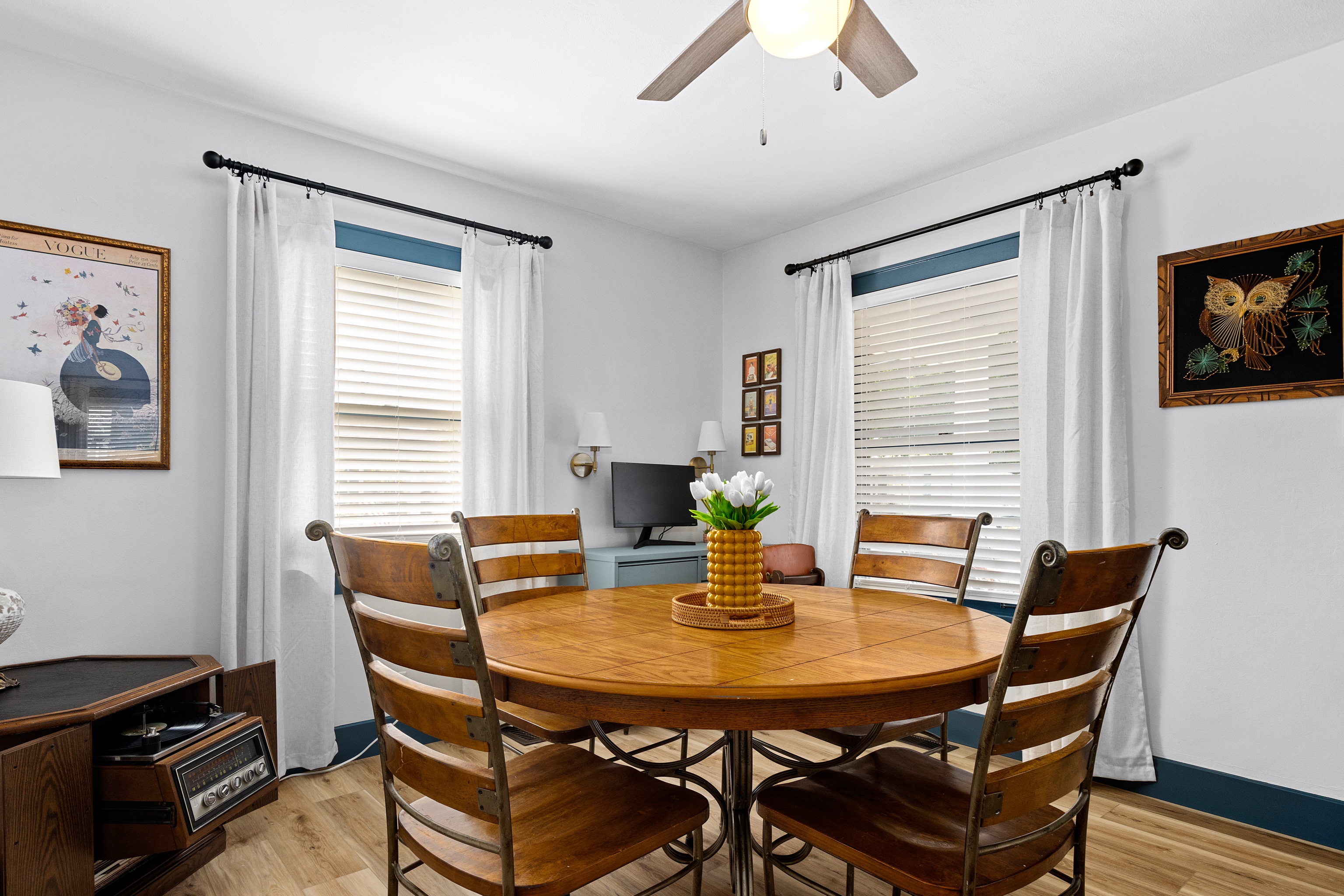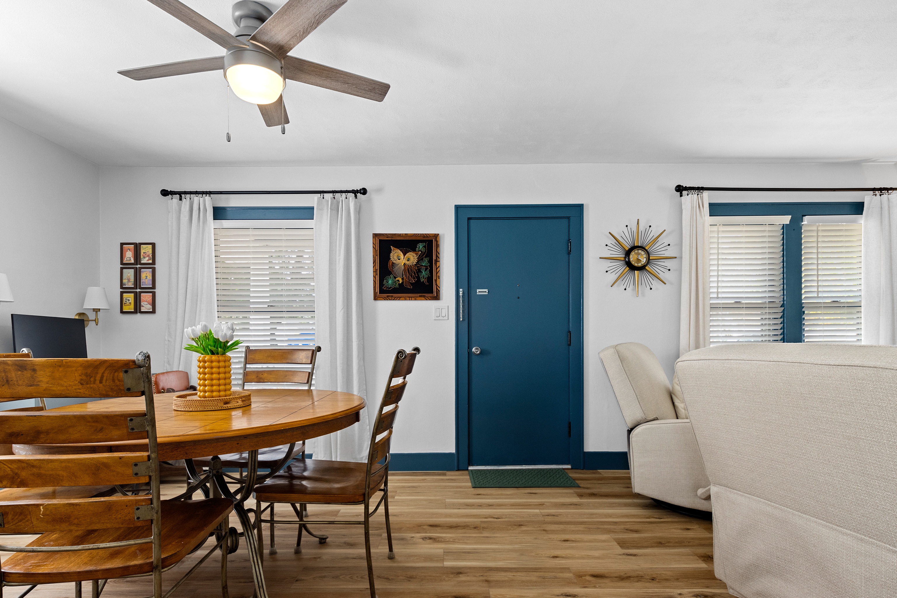 🌟 Whether you’re in town for work, a family visit, or a weekend getaway, our Bartonville retreat offers the convenience of location and the comforts of home—with a fun mid-century twist.