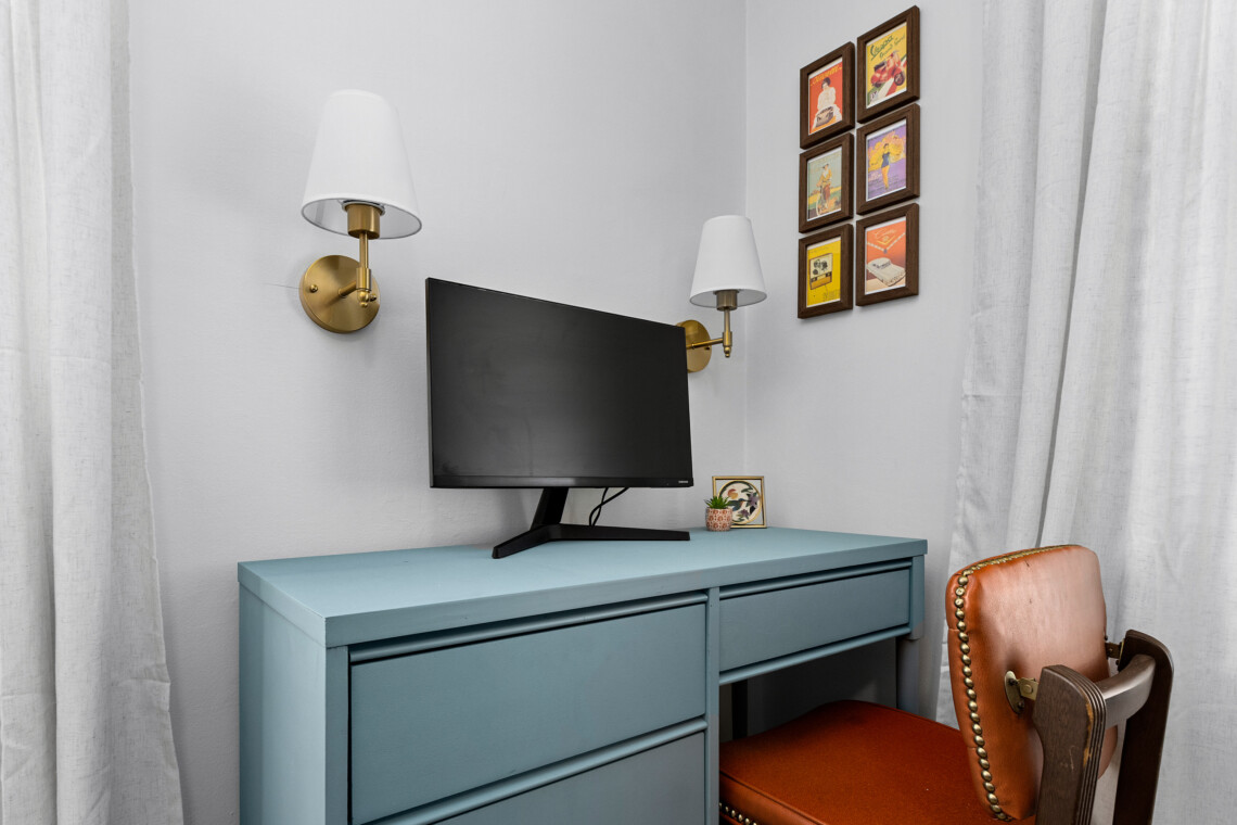 Dedicated work space with monitor—ideal for remote work or extended stays.