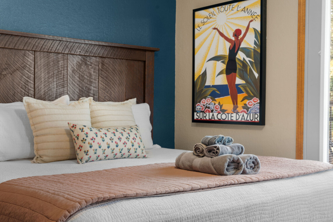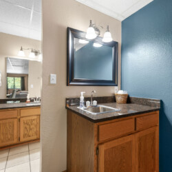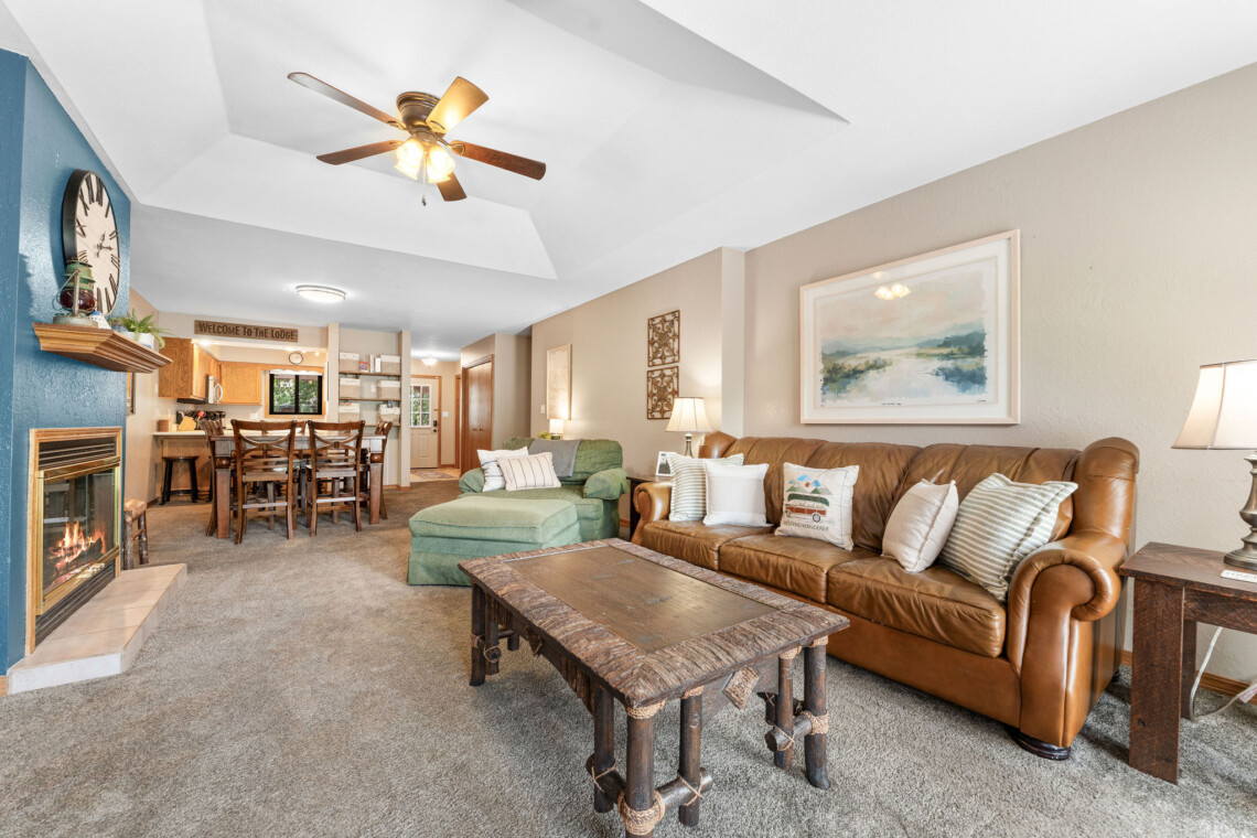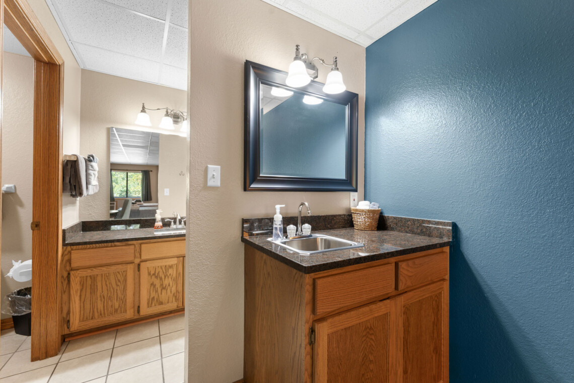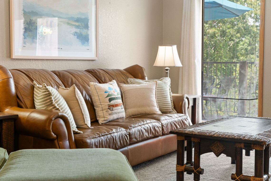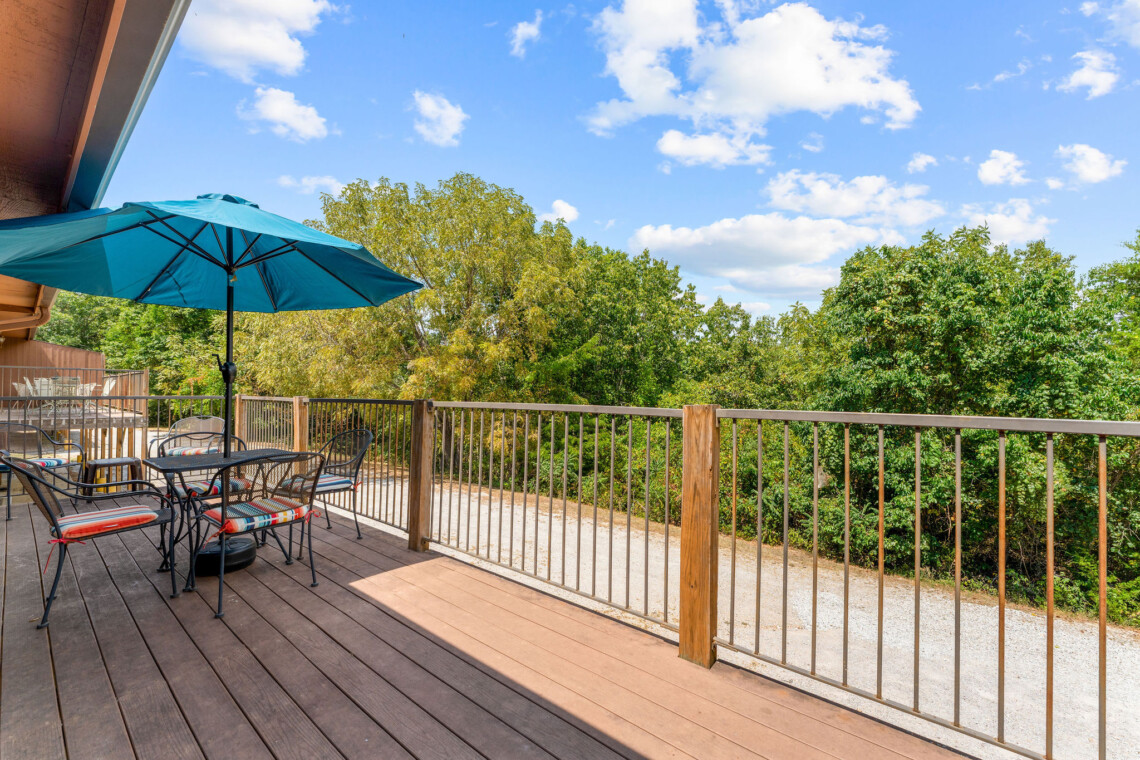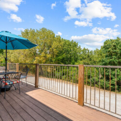 Primary Suite (Main Level): King bed + ensuite bath + deck access