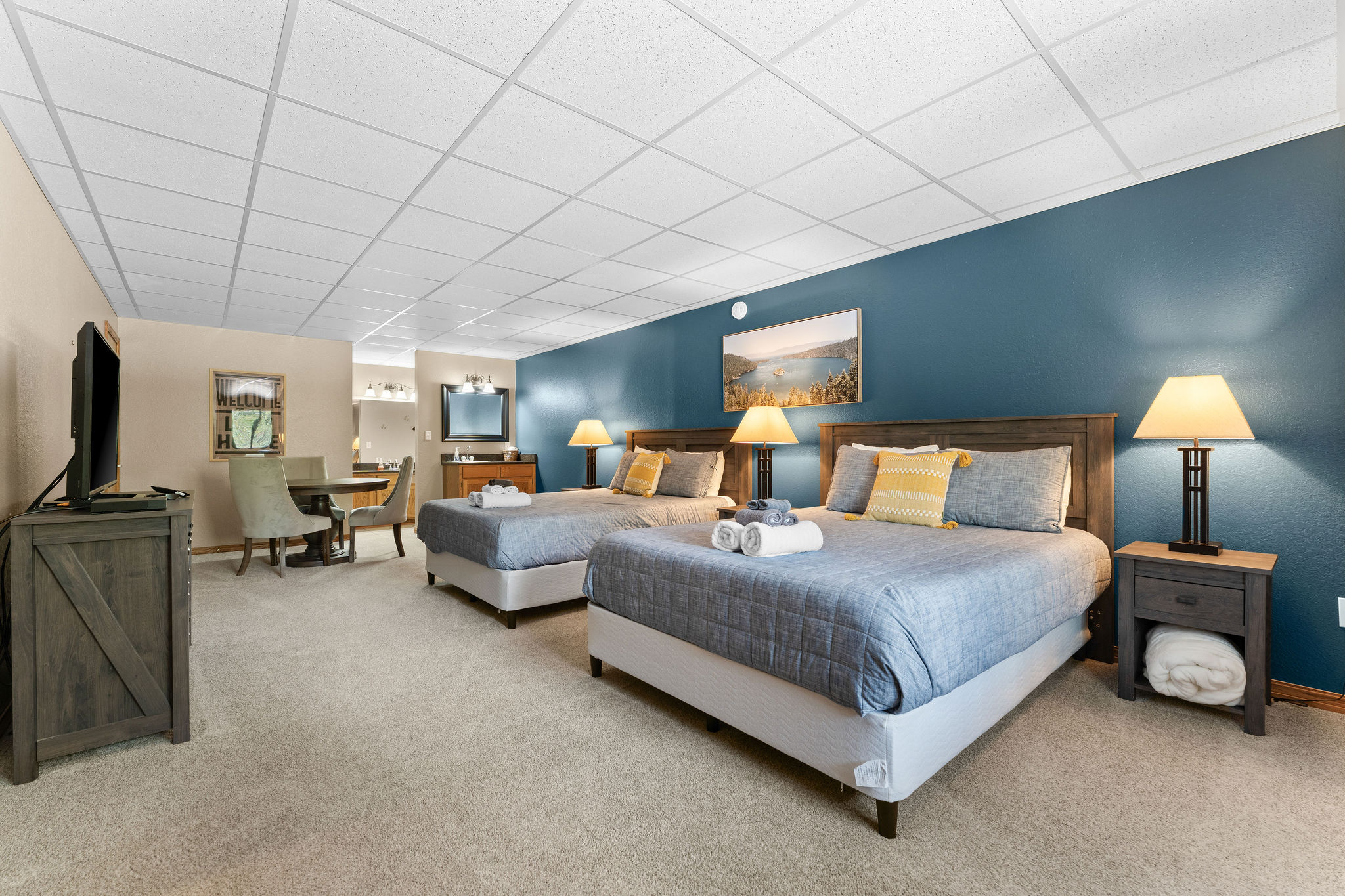 Bedroom 3 (Lower Level): 2 Queen beds + ensuite bath + private entry