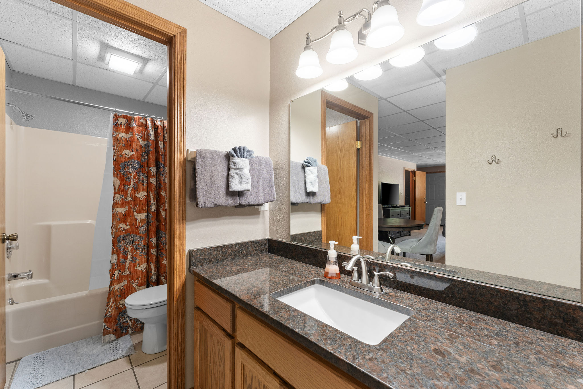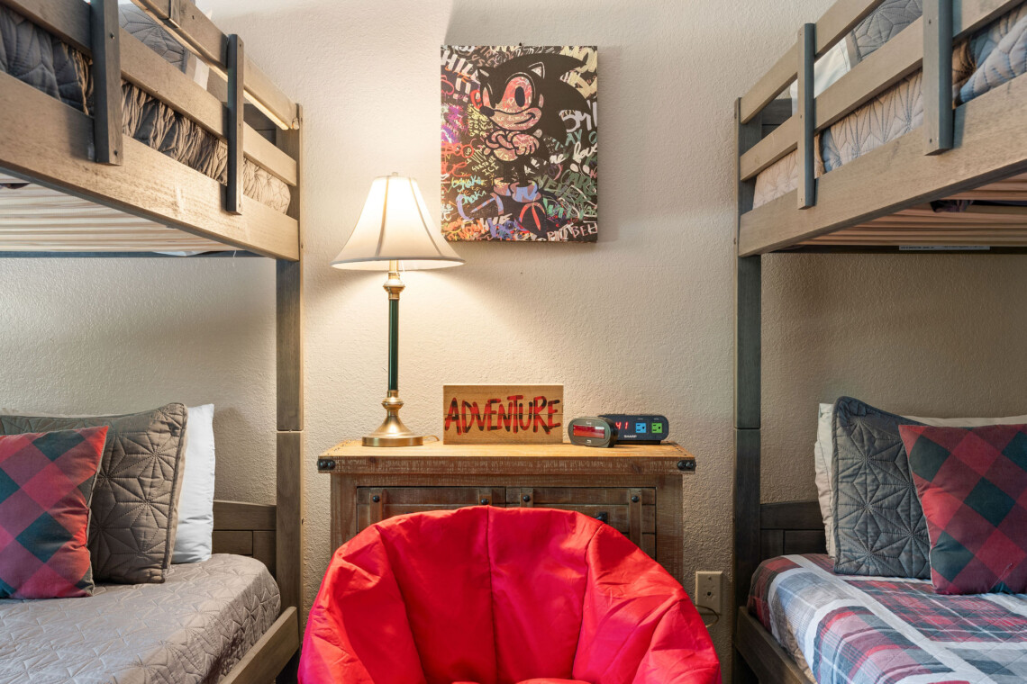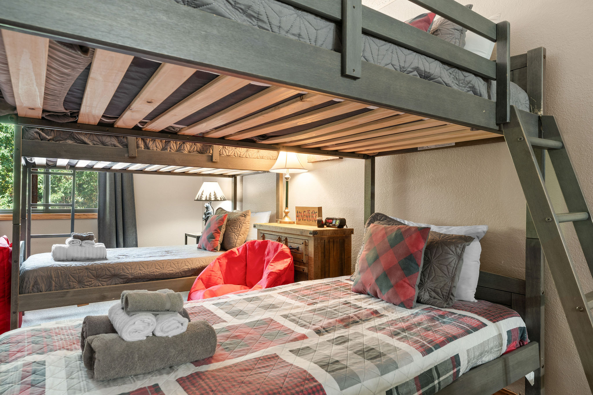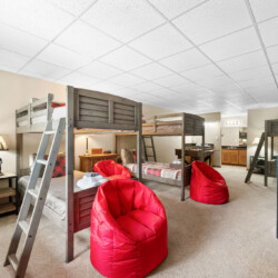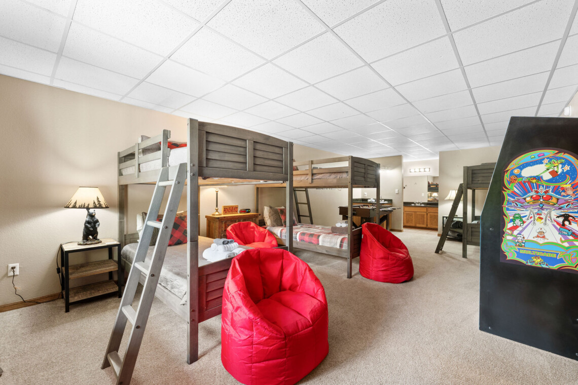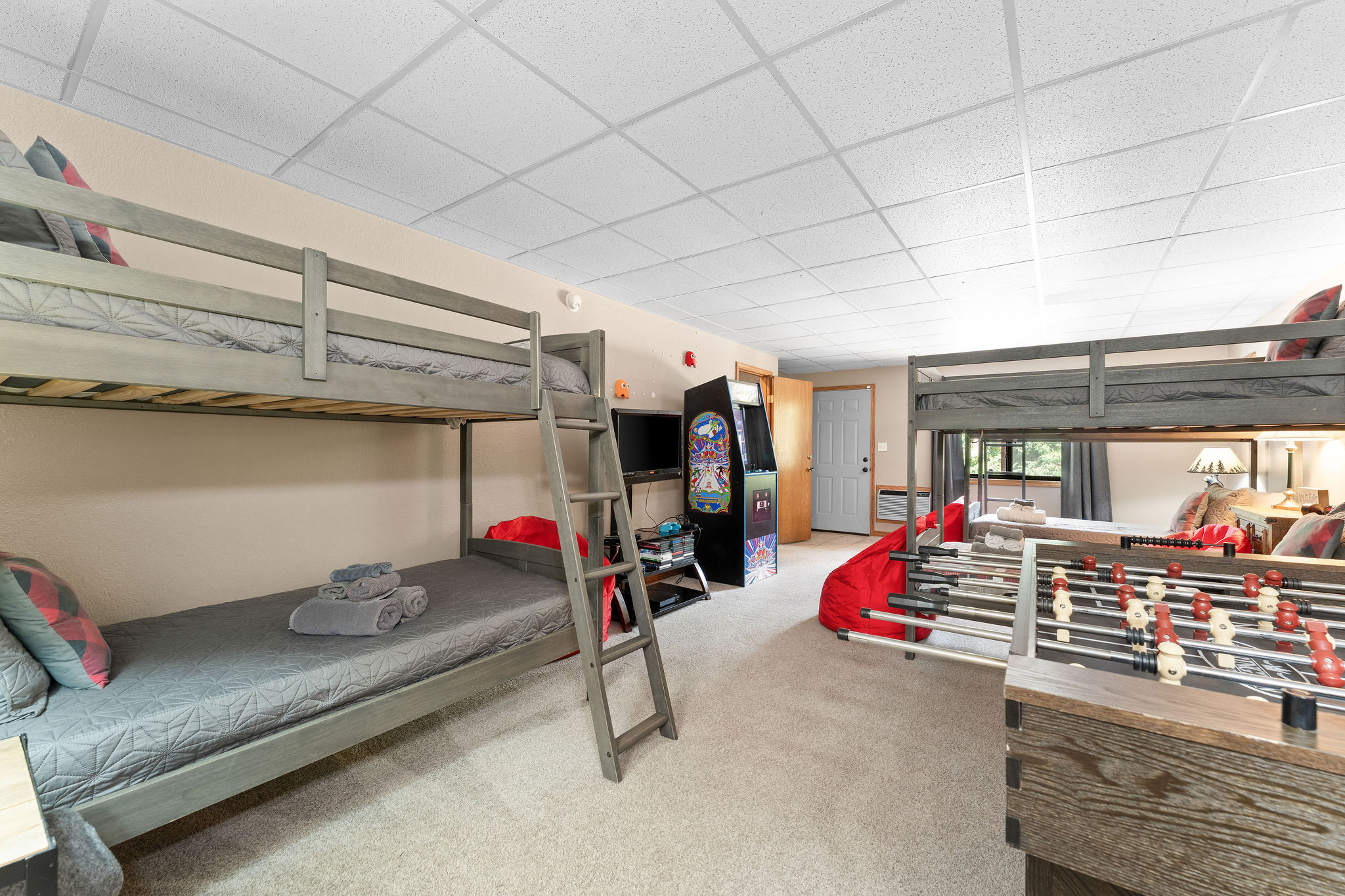 Bedroom 4 (Lower Level): 3 Twin bunk beds + ensuite + foosball + TV